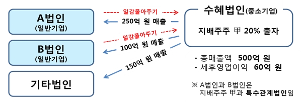 ② 수혜법인의 사업연도 매출액 중 지배주주와 특수관계에 있는 법인에 대한 매출액 비율이 30%*(중소기업 50%‧중견기업 40%)를 초과할 것