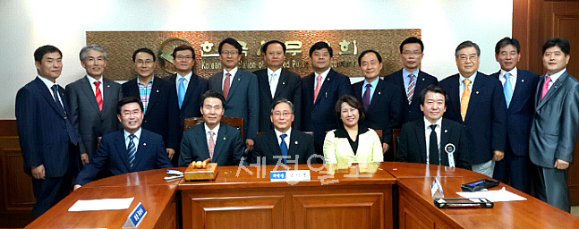 ◆사진은 지난해 세무사회 임원선거에 나섰던 후보자들과 선관위원들이다.
