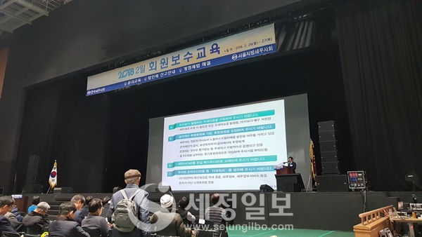 한국세무사회(회장 이창규)는 26일 오후 1시 올림픽공원 올림픽홀에서 서울지방세무사회 회원을 대상으로 ‘2018년 2월 회원보수교육’을 실시했다.