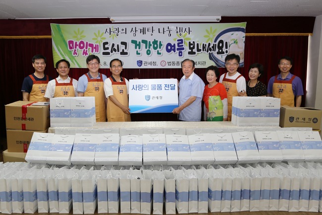 관세청은 이날 행사는 어려운 이웃과 함께하는 사랑나눔 실천문화를 확산하고 기관의 사회적 책임을 다하겠다는 취지에서 마련된 것으로 120여 분의 어르신들께 여름철 혹서기를 맞아 보양식인 삼계탕을 점심식사로 대접하면서 뜨거운 정이 넘치는 한때를 보냈다.