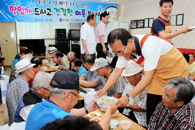 이날 앞치마를 두르고 어르신들에게 직접 삼계탕 배식을 맡은 김낙회 관세청장은 “관세청이 정성껏 준비한 삼계탕을 드시고 어르신들이 무더위를 이겨내고 무탈하게 여름을 나는데 조금이나마 도움이 됐으면 한다”고 말했다.