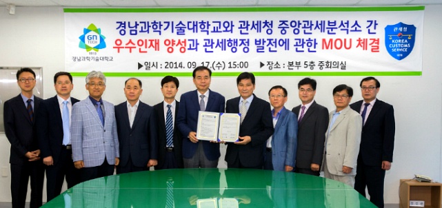 관세청 중앙관세분석소(소장 김상목)와 국립 경남과학기술대학교(총장 권진택)는 17일 오후 3시 경남과학기술대학교 본관에서 양측 관계자가 참석한 가운데 지역 중소기업 지원, 일자리 창출을 위한 관-학 협력을 위한 양해각서(MOU)를 체결했다.