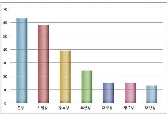 국세청에서 본청에서 63명, 서울국세청 58명, 중부국세청 39명, 부산국세청 24명, 광주국세청15 명, 대구국세청 15명, 대전지방국세청 13명이 배출됐다.