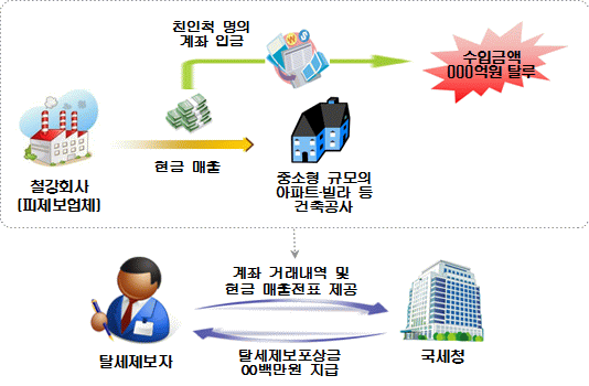 철강 판매대금을 친인척 명의 계좌로 입금받아 신고누락한 사실을 제보하여 탈루세액 추징하고 포상금 지급