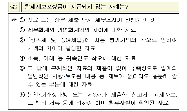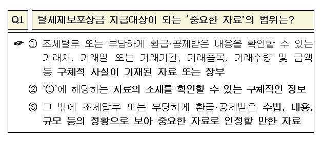 [탈세제보ㆍ차명계좌 포상금 관련 주요 Q&A]