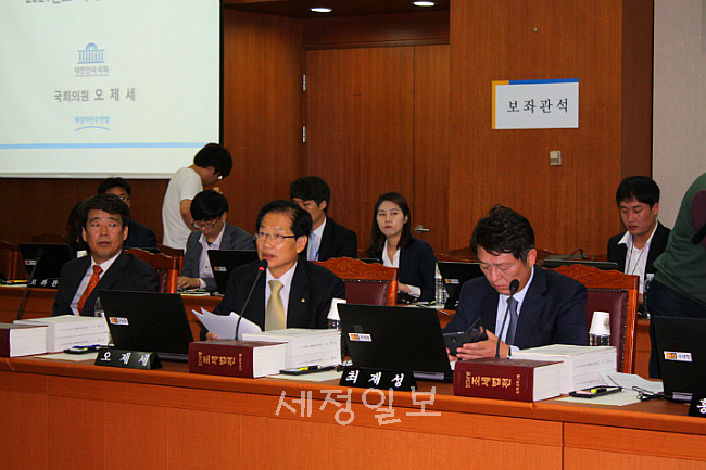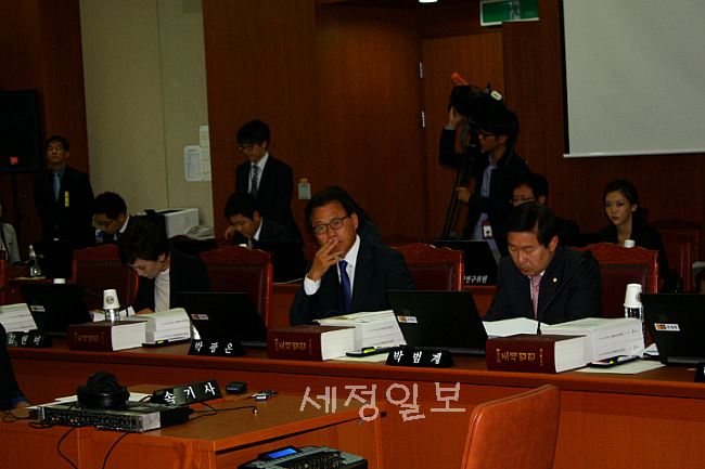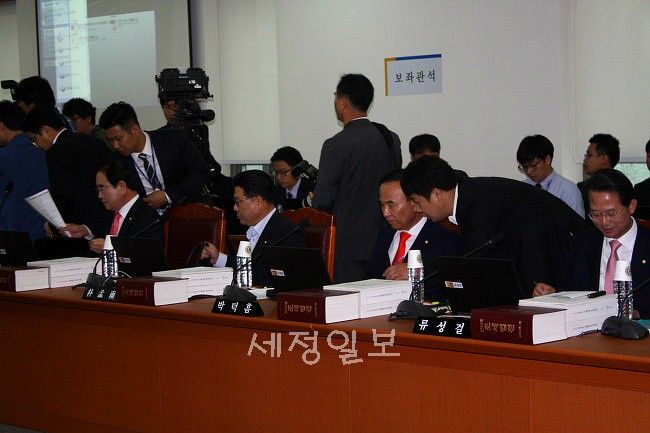 ◆국세청 국정감사는 5층에 마련되었다. 사진 좌측이 새정치민주연합 등 야당. 우측이 새누리당(여당)의원들이다.