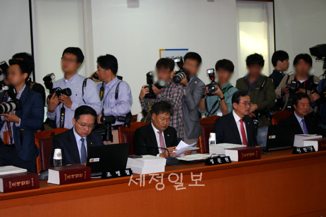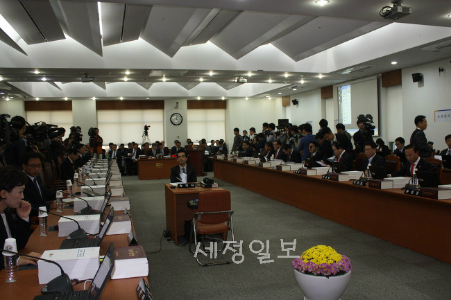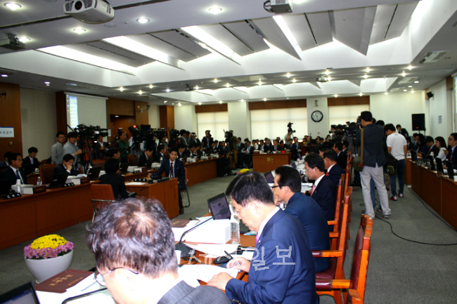 ◆기획재정위의 국세청에 대한 국정감사에 쏠린 눈. 각종 방송과 신문사 카메라 기자들이 취재전쟁을 벌이고 있다.