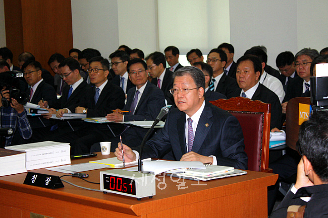 ◆ '준비된 청장'. 임환수 청장은 이날 국정감사에서 의원들의 질문에 줄곧 차분하게 답변하는 모습이었다.