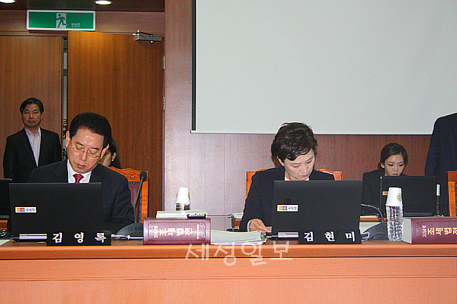 ◆ 질문에 앞서 '열공'중인 새정치민주연합 김영록 의원과 김현미 의원.
