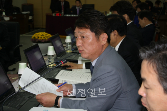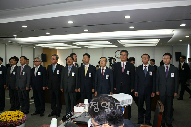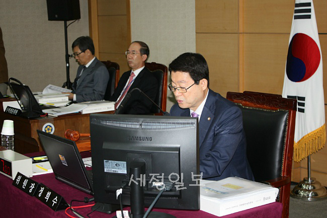 ◆…정희수 국회 기획재정위원장이 10일 수원에 위치한 중부국세청 회의실에서 2014년 서울, 중부국세청에 대한 국정감사 시작을 선포하고 있다.