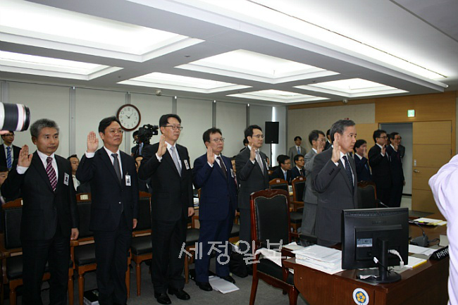 ◆…김연근 서울국세청장이 국정감사에 앞서 선서를 하고 있다.
