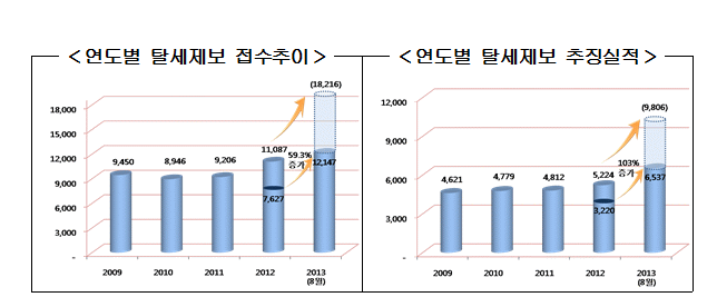 탈세제보 및 차명계좌 신고포상금제도가 국세청의 강력한 세무조사와 함께 조세정의를 앞당기는 최적의 수단으로 자리 잡아 가고 있다는 반증이다.
