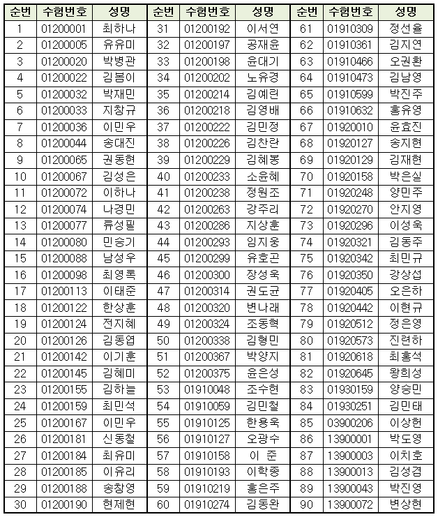 ◆ 2014년 관세사 일반전형 최종합격자 명단(수험번호 순)