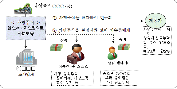 친인척 등 명의로 보유하던 차명주식을 실명전환 없이 자녀 등에게 물려주는 방법으로 부를 편법 이전