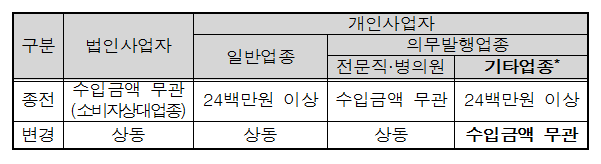 또 내년 1월1일 이후 거래분부터는 발급의무 기준금액도 30만원 에서 10만원 이상으로 확대 시행된다. 현재 기준금액 확대 정부(안)이 국회에 제출된 상태다.