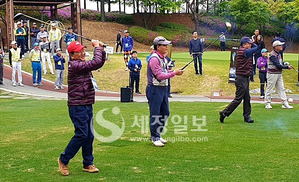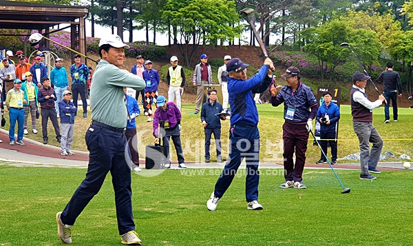 이날 행사는 개회선언과 기념촬영, 시타식에 이어 오후 1시30분 샷건 신페리오 방식으로 동시티업 했다.