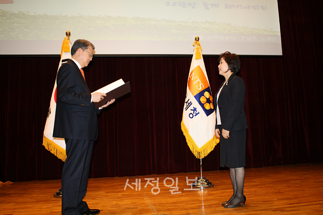 ◆ 임환수 청장이 임명장을 수여하면서 앞으로 국세청을 위해 더욱 열심히 해 달라고 주문하고 있다.