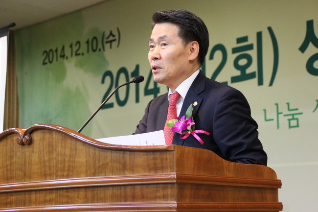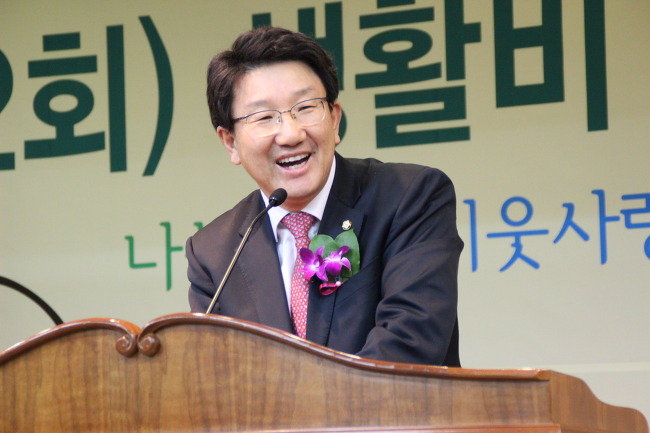 ◆ 제2회 한국세무사회공익재단 '생활비 및 장학금 전달식'에서 권성동 의원이 인사말을 하고 있다.