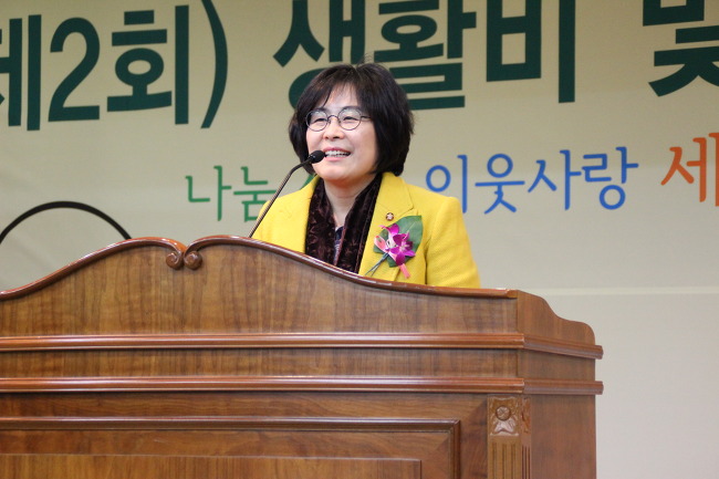 ◆ 제2회 한국세무사회공익재단 '생활비 및 장학금 전달식'에서 유승희 의원이 인사말을 하고 있다.