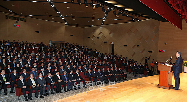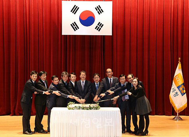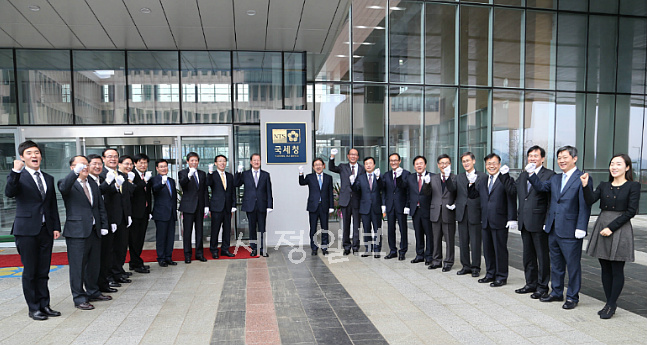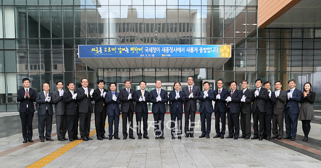 ◆ 국세청 간부들이 세종시 새대를 맞아 세종청사에서 새롭게 출발하겠다면서 박수를 치고 있다.