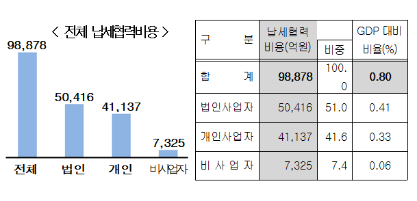 1. 전체 납세협력비용 9조 8,878억원 - GDP 대비 0.8%