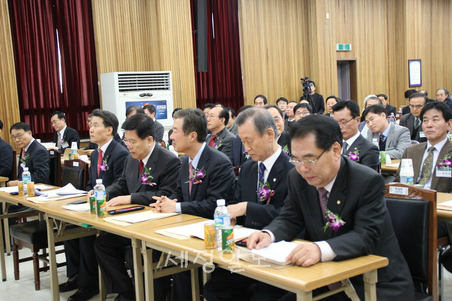 ◆ 8일 세무사회 신년인사회에 참석한 이정현 의원(사진 맨 우측). 이 의원은 약간 늦게 참석해 세무사회 고문들 옆에 자리했다.