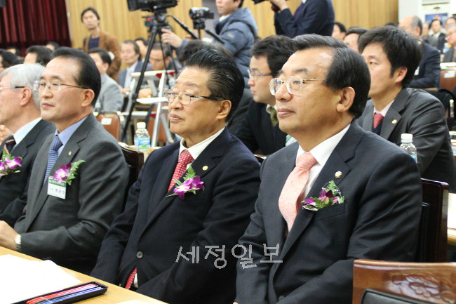 ◆ 8일 세무사회 신년회에 참석한 선량들. 사진 우측부터 백재현, 양창영, 이만우, 김광림 의원.