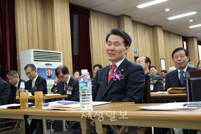 ◆ 김광림 의원의 '폭풍칭찬'에 정구정 회장이 쑥쓰러운 표정을 짓고 있다.