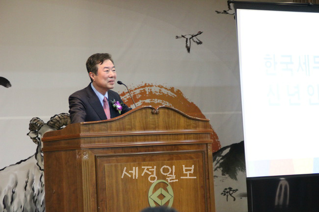 ◆ 임향순 전 세무사회장이 전직 세무사회장 자격으로 단상에 올라 새해 덕담을 했다.