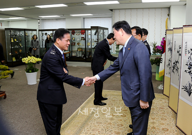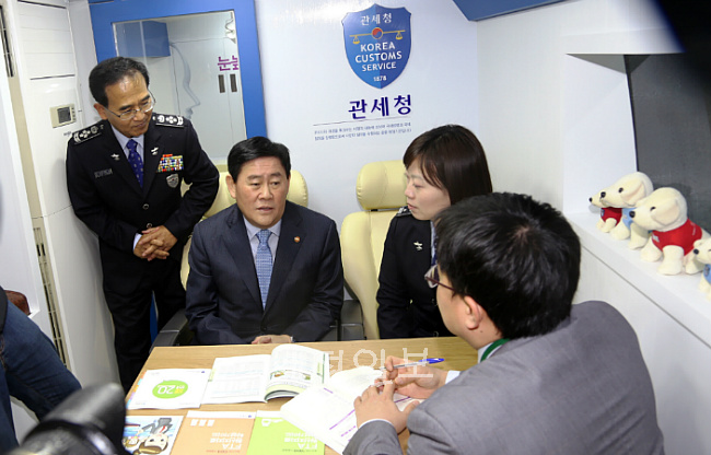 ◆ 일선 세관장을 접견하고 있는 최경환 경제부총리.