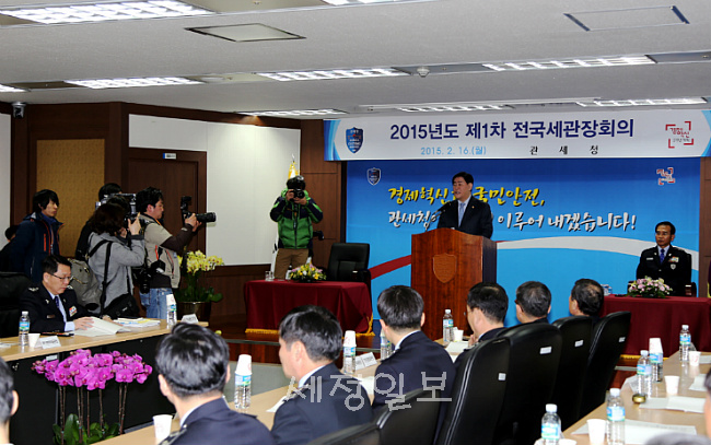 ◆ 전국세관장회의시 치사를 하고 있는 최경환 경제부총리.
