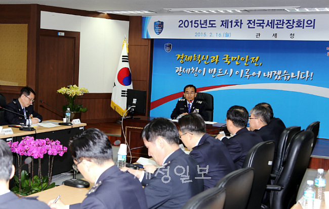 ◆전국세관장회의시 인사말을 하는 김낙회 관세청장.