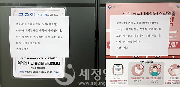 굳게 닫힌 출입문사이로 들여다본 체력단련실은 ‘황량’해 보이기까지 했다.