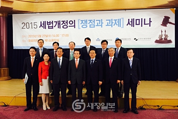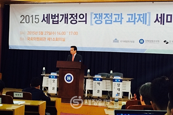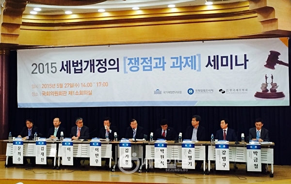 27일 오후 2시 국가재정연구포럼(대표의원: 나성린․장병완), 국회입법조사처(처장: 임성호), 한국세무학회(회장: 홍기용) 공동으로 서울 여의도 국회의원회관 제1소회의실에서 ‘2015년 세법개정의 쟁점과 과제’라는 주제의 세미나가 시작됐다.