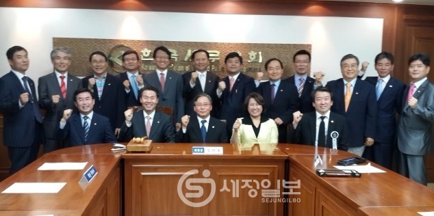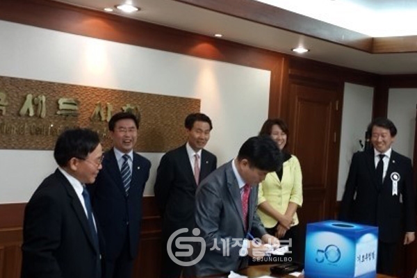 ◆31일 제28대 세무사회 임원선거에 출마한 후보자들이 기호추첨을 마친후 공정선거를 다짐하는 화이팅을 외치고 있다.
