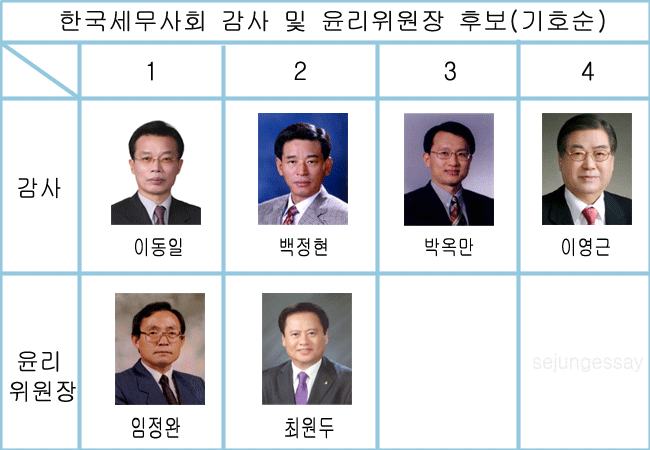 윤리위원장 후보에는 현 최원두 위원장과 임정완 세무사가 등록을 마쳐 2파전으로 치러진다.