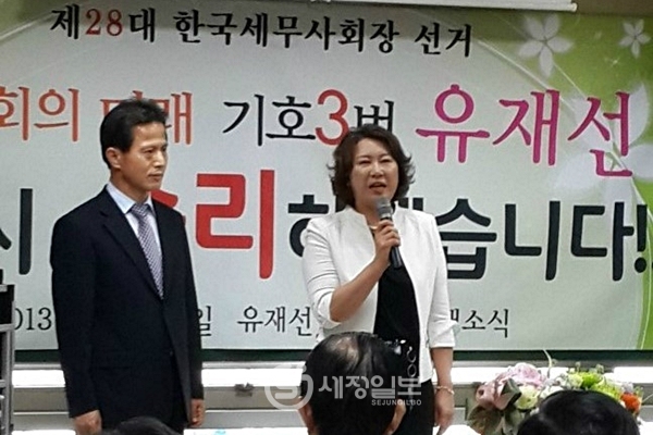 ‘여성대통령 시대’, ‘여성세무사회장’. 가능할까? 그 가능성을 엿볼 수 있는 출정식이 10일 오후 3시 역삼동 메가시티 빌딩 2층에서 열렸다. 제28대 한국세무사회장 선거에 출사표를 던진 유재선 후보(기호3번,부회장 후보:허창식·이봉구)의 선거사무소 개소식.