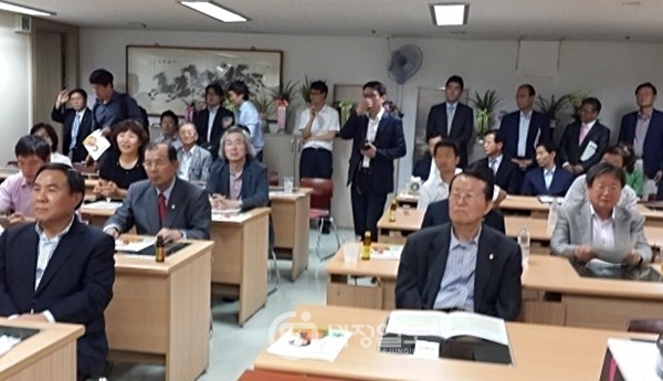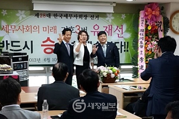 총괄선대본부장을 맡은 조용근 전 한국세무사회장을 비롯해 유 후보를 지지하는 세무사들이 자리를 가득 메웠다.