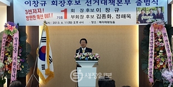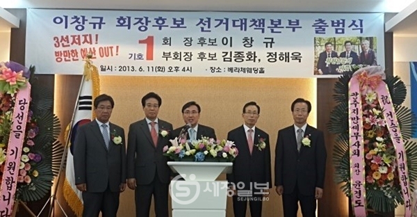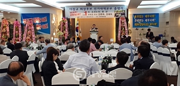 11일 오후 서울 서초동 베라체웨딩홀에서 개최된 제28대 한국세무사회장 선거에 출사표를 던진 이창규 후보(기호1번, 부회장 후보: 김종화, 정해욱)의 선거대책본부 출범식이었다.