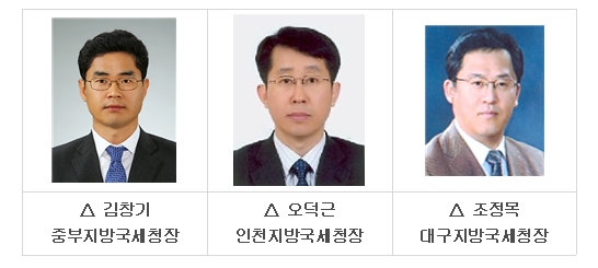 국세청은 이날 김 신임 중부국세청장을 비롯한 후진을 위해 명퇴를 결심한 인천, 대구국세청장에 오덕근 전산정보관리관과 조정목 소득지원국장을 각각 임명했다.