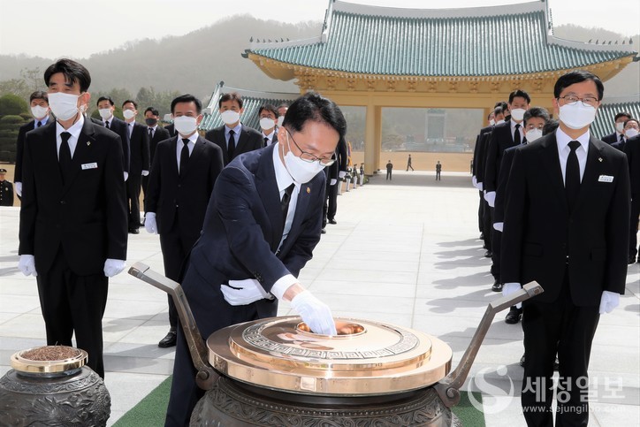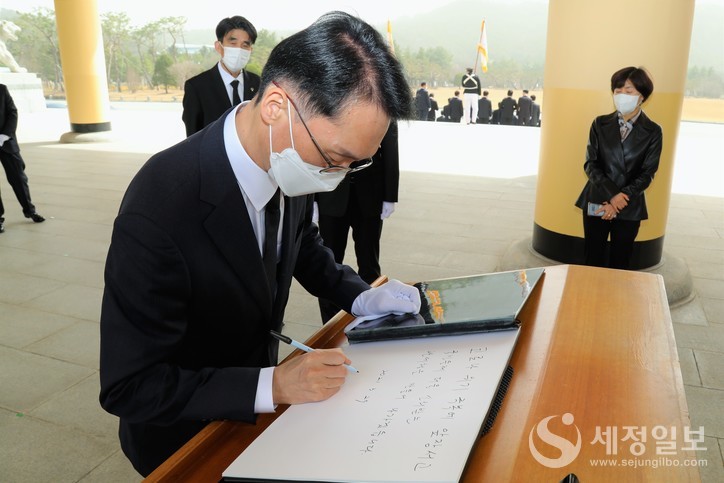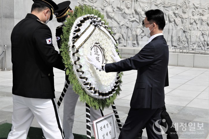 참배후 임재현 관세청장은 방명록에 '코로나 위기 극복에 앞장서고 국민들께 더욱 신뢰받는 관세청을 만들어 나가겠습니다'라고 다짐을 적었다.