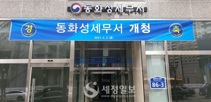 동화성세무서는 동탄(화성시 오산동 961-1, 3~4층, 9~11층)에서 새롭게 업무를 시작하며, 관할구역은 화성시 중 동탄 1~8동, 진안동, 반월동, 기배동, 화산동, 병점 1·2동, 정남면, 오산시 전역이다.