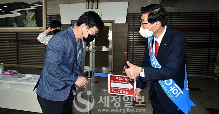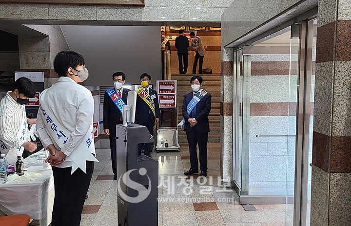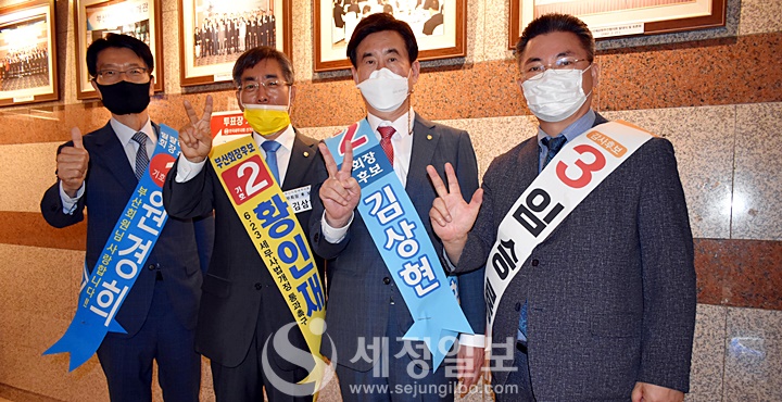 이날도 각 후보들은 기호와 이름이 새겨진 어깨띠를 두르고 부산회원들의 민심을 잡기위해 목이 터져라 자신의 기호를 외치며 한표를 호소했다.