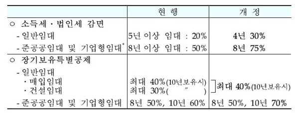 ㅇ서민․중산층의 주거안정을 위해 임대사업자에 대한 세제지원 확대