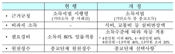 ㅇ종교소득으로 법률에 명시하고, 종교단체의 원천징수는 선택 허용