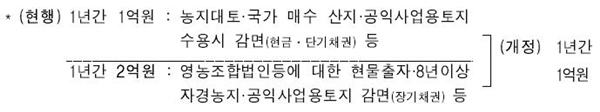 ㅇ공익사업용 수용토지 보상이 현실화된 점 등을 감안하여 양도세 감면율을 조정*