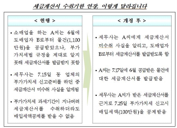 ㅇ 과세기간이 지나 부가가치세 신고준비 과정 등에서 세금계산서를 발급받은 경우 매입세액공제를 받지 못하는 불이익 해소