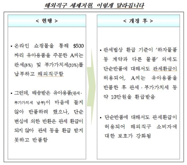 ㅇ 해외직구를 이용하는 소비자 보호를 강화하기 위해 반환하는 물품에 대한 관세 환급 대상 확대*