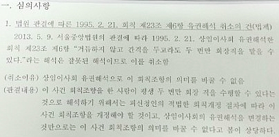 이날 상임이사회에서 95년도 유권해석을 취소한 것은 지난 5월 나온 ‘임시총회결의효력정지가처분’결정의 후속조치 차원에서 이뤄진 것으로 알려졌다.