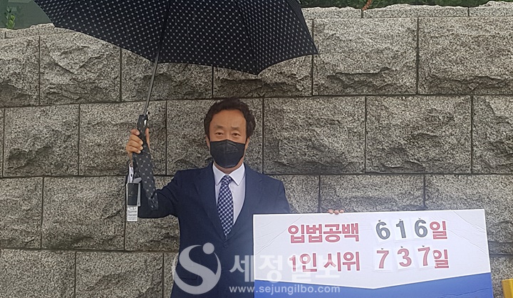 7일 국회 의사당 앞 "불합리한 법 방치 하는 것 국회의원의 직무유기"